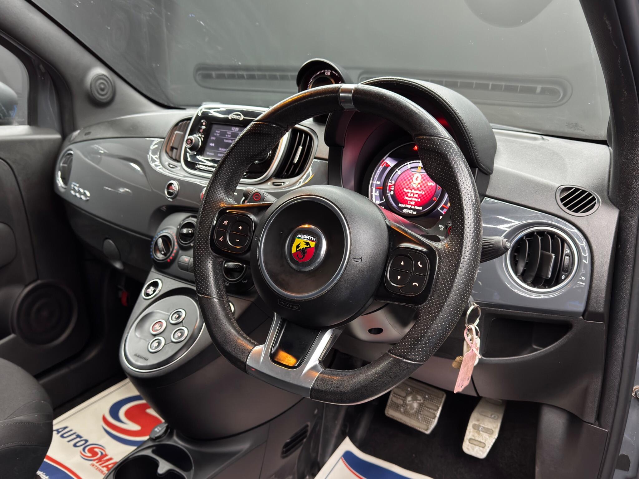 Here at Motor Gurus we are delighted to offer a Abarth 595 1.4 T-Jet Auto. This vehicle is in very good condition when taking into consideration the vehicle's age and mileage. This specific vehicle is finished in a GLOSS GREY and is contrasted by a BLACK CLOTH interior. This vehicle comes included with: PERFORATED GRIPPED LEATHER STEERING WHEEL, DIGITAL COCKPIT, TWIN CUPHOLDERS, DRIVING MODES, CLIMATE CONTROL, DAB RADIO, BLUETOOTH AUDIO, TELEPHONE CONNECTIVITY, TYRE PRESSURE MONITORING AND MUCH MORE! We will also provide this vehicle with a 12 MONTH MOT and a FRESH OIL SERVICE before it leaves our premises (OTR).