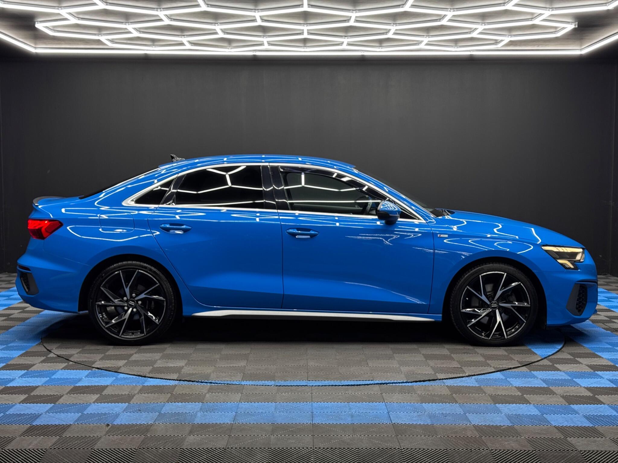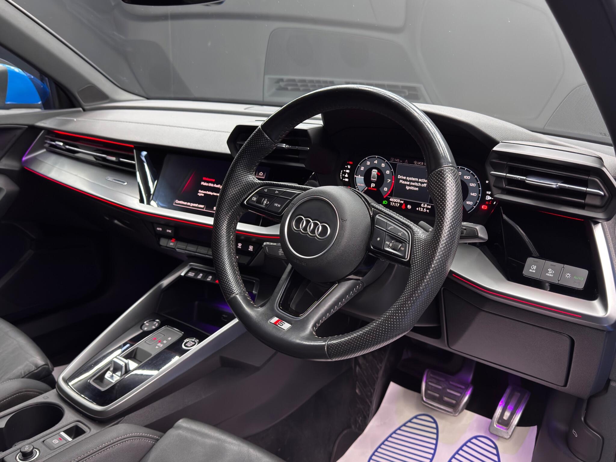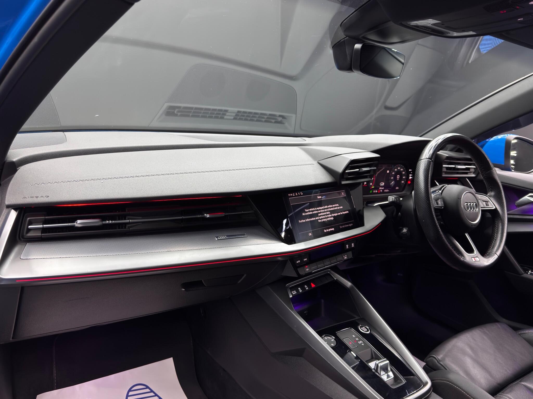 Here at Motor Gurus we are delighted to offer an Audi A3 1.5 TFSI 35 S line S Tronic. This vehicle is in immaculate condition inside and out. This specific vehicle is finished in a GLOSS BLUE and is contrasted by a BLACK LEATHER interior. This vehicle comes included with: FRONT & REAR SENSORS, PRIVACY GLASS, AUTOMATIC HEADLIGHTS, PERFORATED GRIP LEATHER STEERING WHEEL, KEYLESS START, HEATED SIDE MIRRORS, CRUISE CONTROL, TWIN CUPHOLDERS, SAT NAVIGATION, DAB RADIO, BLUETOOTH AUDIO, TELEPHONE CONNECTIVITY, APPLE CARPLAY, DRIVING MODES, AUDI PRE-SENSE, TYRE PRESSURE MONITORING, AMBIENT LIGHTING AND MUCH MORE! Our Audi A3 1.5 TFSI 35 S line S Tronic will also come provided with a 12 MONTH MOT as well as a FRESH OIL SERVICE before it leaves our premises (OTR).