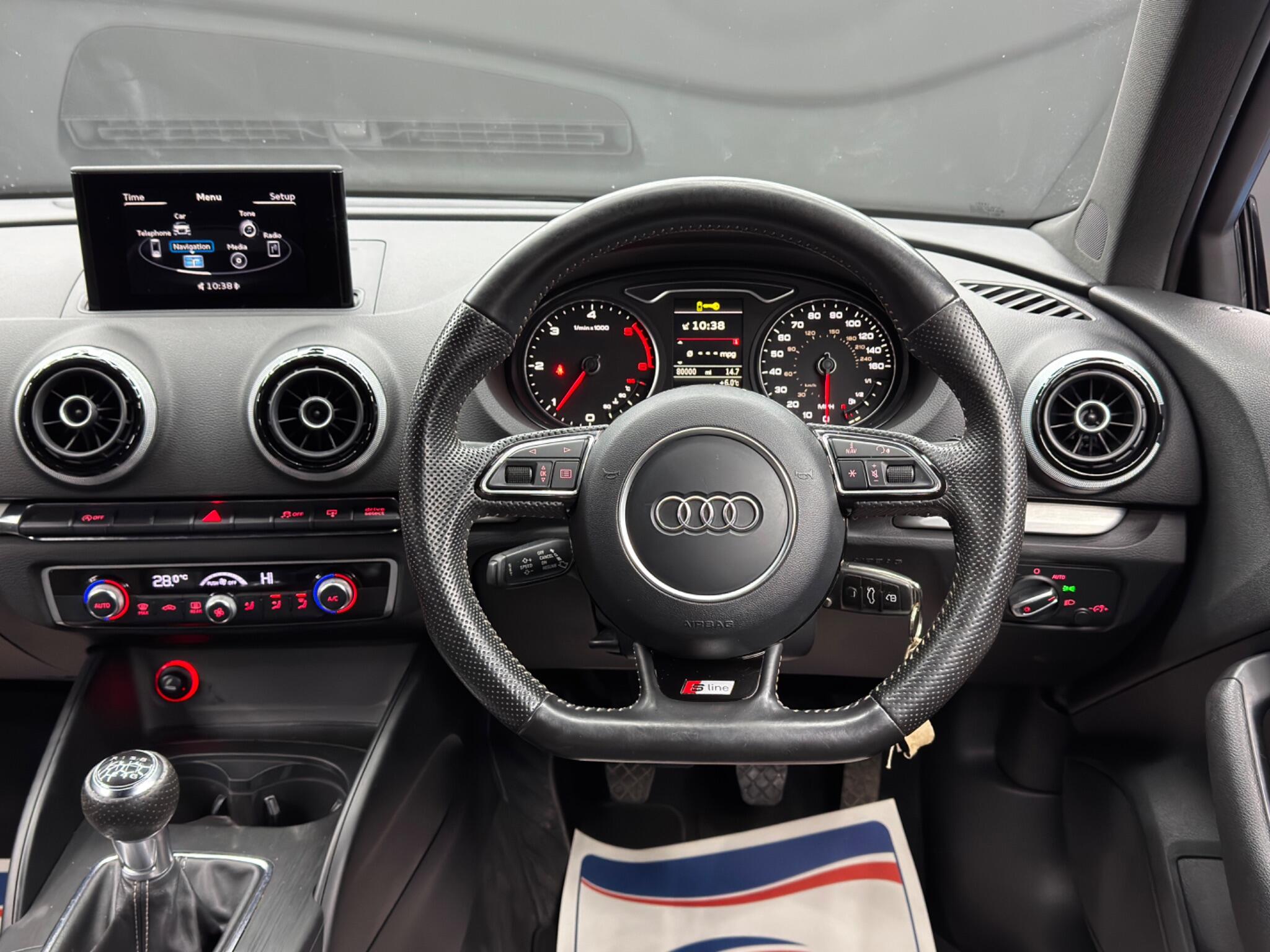 Here at Motor Gurus we are delighted to offer a Audi A3 2.0 TDI S line. This vehicle is in very good condition when taking into consideration the vehicle's age and mileage. This specific vehicle is finished in a METALLIC GREY and is contrasted by a BLACK LEATHER/CLOTH interior. This vehicle comes included with: REAR PARKING SENSORS, HEATED SIDE MIRRORS, PERFORATED GRIPPED LEATHER STEERING WHEEL, CRUISE CONTROL, AUTOMATIC HEADLIGHTS, TWIN CUPHOLDERS, DRIVING MODES, CLIMATE CONTROL, SAT NAVIGATION, DAB RADIO, BLUETOOTH AUDIO, TELEPHONE CONNECTIVITY, TYRE PRESSURE MONITORING AND MUCH MORE! Our Audi A3 2.0 TDI S line is ONLY £20 TAX and will also come provided with a 12 MONTH MOT and a FRESH OIL SERVICE before it leaves our premises (OTR).