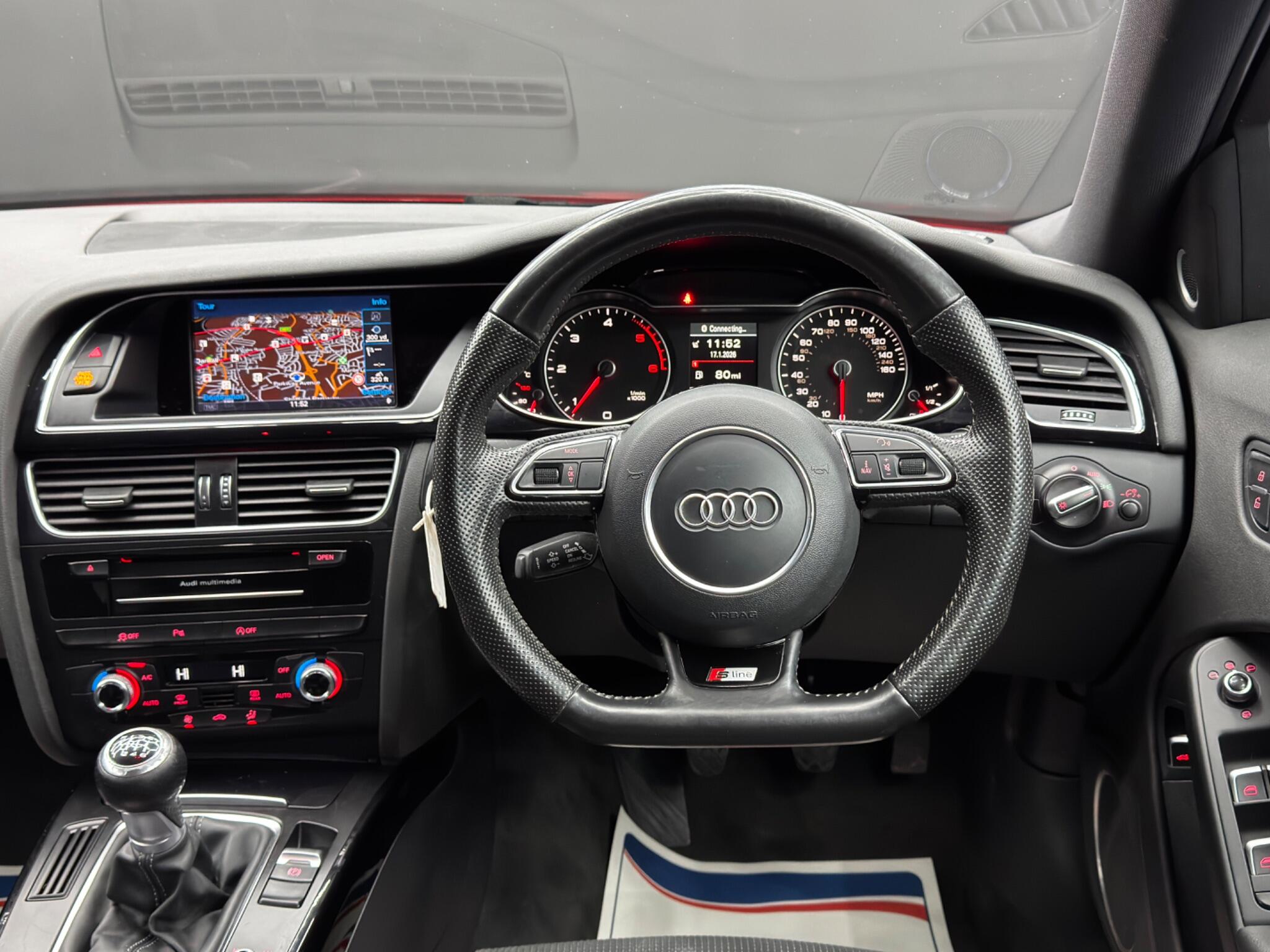 Here at Motor Gurus we are delighted to offer a Audi A4 2.0 TDI Black Edition Plus. This vehicle is in immaculate condition inside and out. This specific vehicle is finished in a GLOSS RED and is contrasted by a BLACK LEATHER/CLOTH interior. This vehicle comes included with: FRONT & REAR PARKING SENSORS, HEATED SIDE MIRRORS, BANG & OLUFSEN SOUND SYSTEM, PERFORATED GRIPPED LEATHER STEERING WHEEL, CRUISE CONTROL, AUTOMATIC HEADLIGHTS, TWIN CUPHOLDERS, CLIMATE CONTROL, SAT NAVIGATION, DAB RADIO, BLUETOOTH AUDIO, TELEPHONE CONNECTIVITY, TYRE PRESSURE MONITORING AND MUCH MORE! Our Audi A4 2.0 TDI Black Edition Plus has come to us with SERVICE HISTORY and is ONLY £35 TAX! We will also provide a 12 MONTH MOT and a FRESH OIL SERVICE before it leaves our premises (OTR).