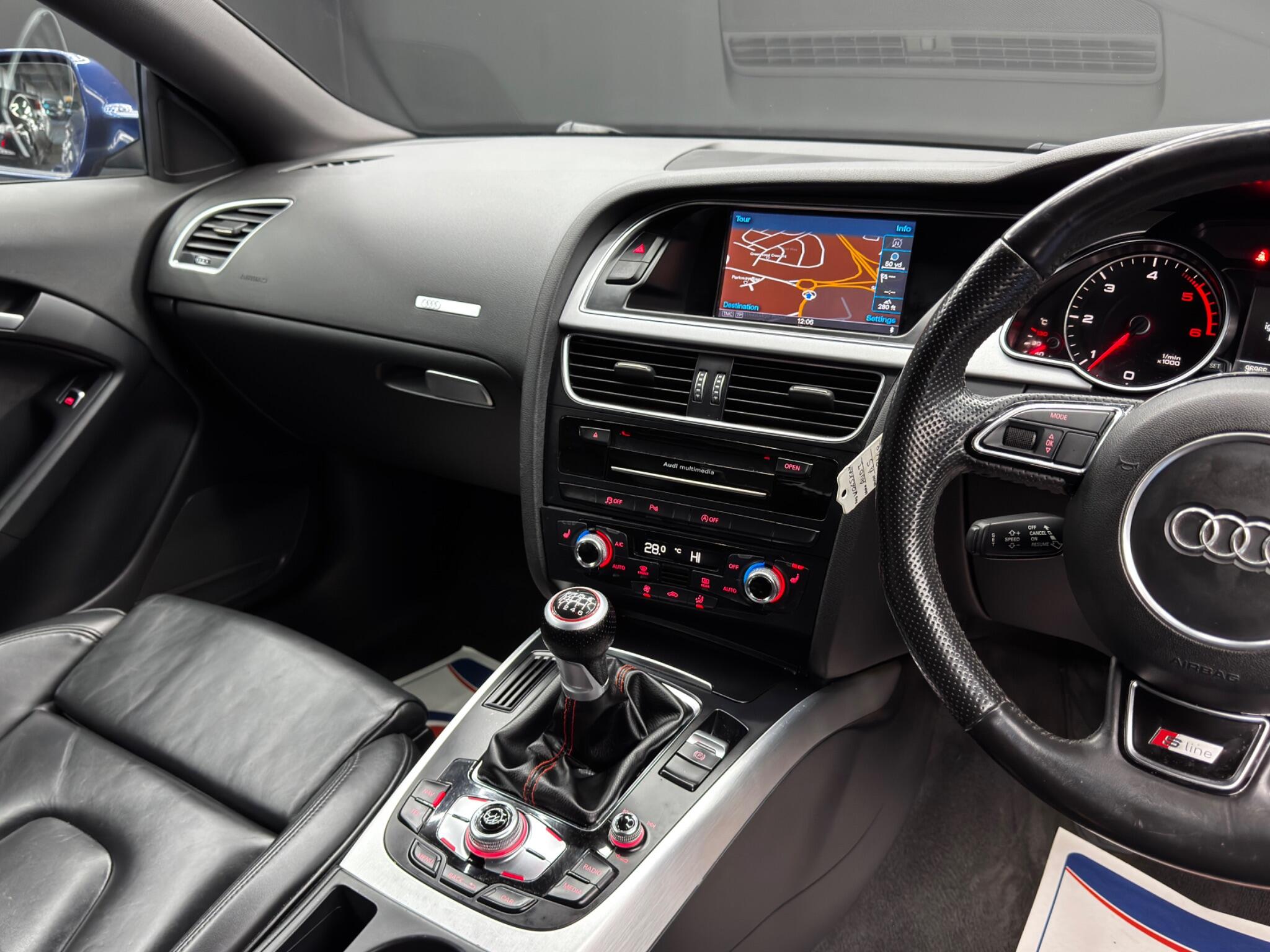 Here at Motor Gurus we are delighted to offer a Audi A5 2.0 TDI S line. This vehicle is in very good condition when taking into consideration the vehicle's age and mileage. This specific vehicle is finished in a GLOSS BLUE and is contrasted by a BLACK LEATHER interior. This vehicle comes included with: FRONT & REAR PARKING SENSORS, HEATED SIDE MIRRORS, FRONT HEATED SEATS, PERFORATED GRIPPED LEATHER STEERING WHEEL, CRUISE CONTROL, AUTOMATIC HEADLIGHTS, TWIN CUPHOLDERS, CLIMATE CONTROL, SAT NAVIGATION, DAB RADIO, BLUETOOTH AUDIO, TELEPHONE CONNECTIVITY, TYRE PRESSURE MONITORING AND MUCH MORE! Our Audi A5 2.0 TDI S line has come to us with SERVICE HISTORY and 2 KEYS and is a 1 FORMER KEEPER (2 owners) FROM NEW! We will also provide a 12 MONTH MOT and a FRESH OIL SERVICE before it leaves our premises (OTR).