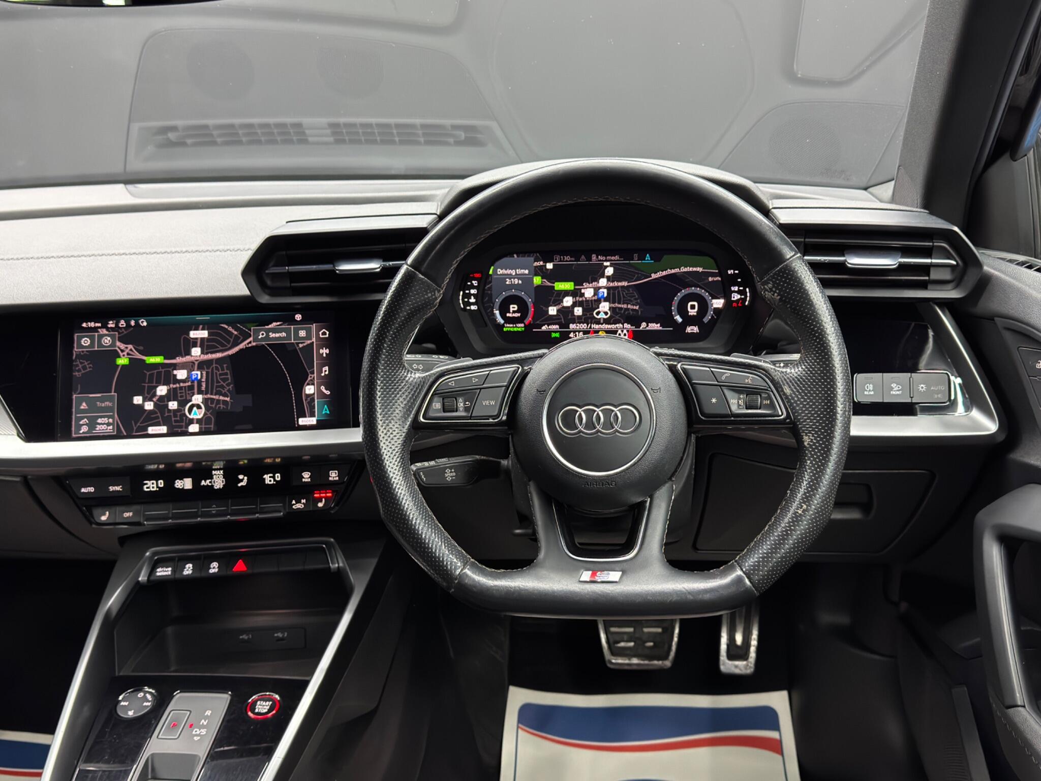 Here at Motor Gurus we are delighted to offer a Audi S3 2.0 TFSI S Tronic quattro. This vehicle is in immaculate condition inside and out. This specific vehicle is finished in a GLOSS BLACK and is matched with a BLACK LEATHER interior. This vehicle comes included with: FRONT & REAR PARKING SENSORS, PRIVACY GLASS, HEATED SIDE MIRRORS, FRONT HEATED SEATS, PERFORATED GRIPPED LEATHER STEERING WHEEL, CRUISE CONTROL, AUTOMATIC HEADLIGHTS, DIGITAL COCKPIT, TWIN CUPHOLDERS, DRIVING MODES, SAT NAVIGATION, DAB RADIO, BLUETOOTH AUDIO, TELEPHONE CONNECTIVITY, APPLE CARPLAY, LANE KEEPING ASSIST, TYRE PRESSURE MONITORING AND MUCH MORE! Our Audi S3 2.0 TFSI S Tronic quattro is a 1 FORMER KEEPER (2 owners) FROM NEW and will also come provided with a 12 MONTH MOT and a FRESH OIL SERVICE before it leaves our premises (OTR).