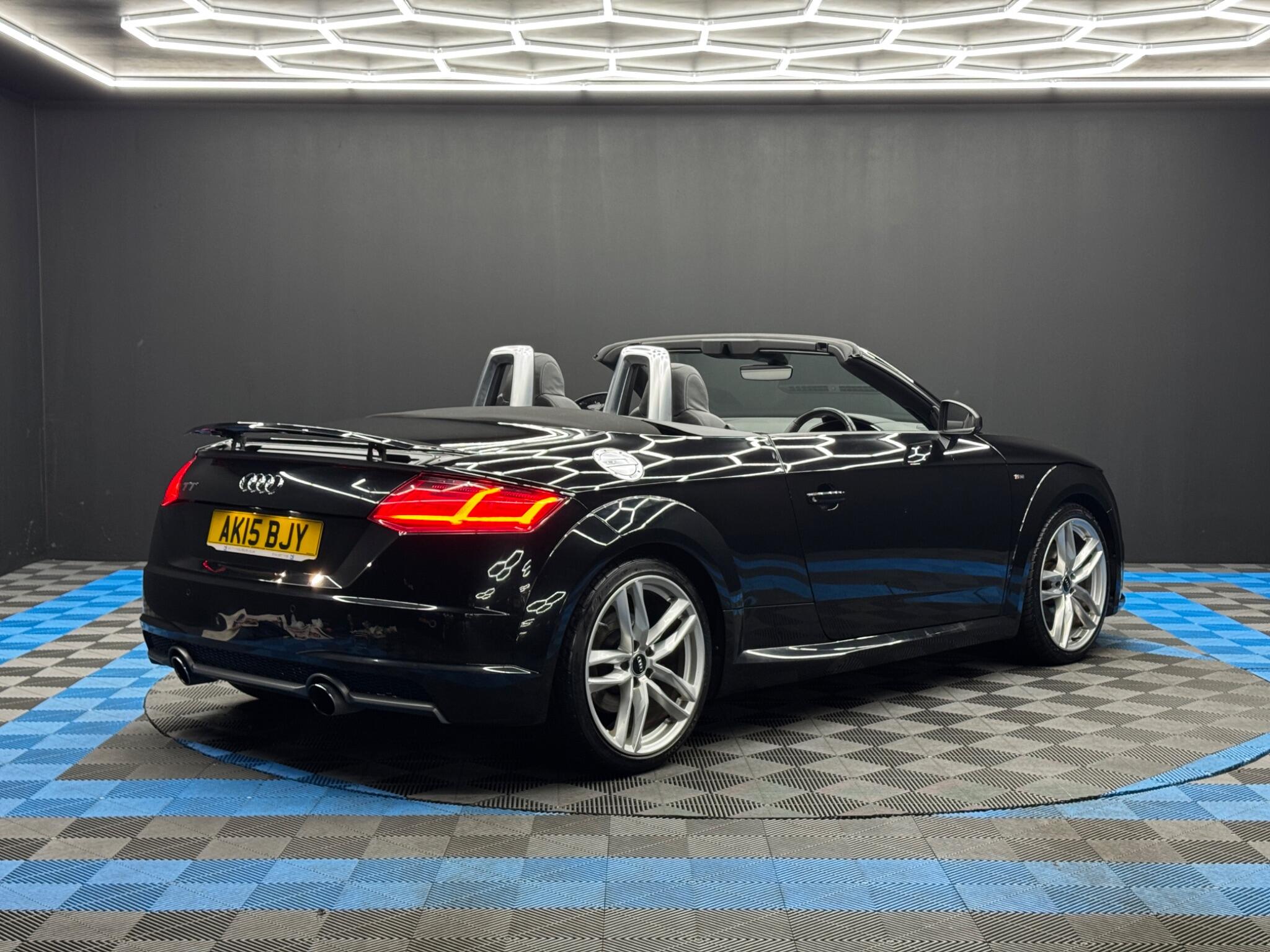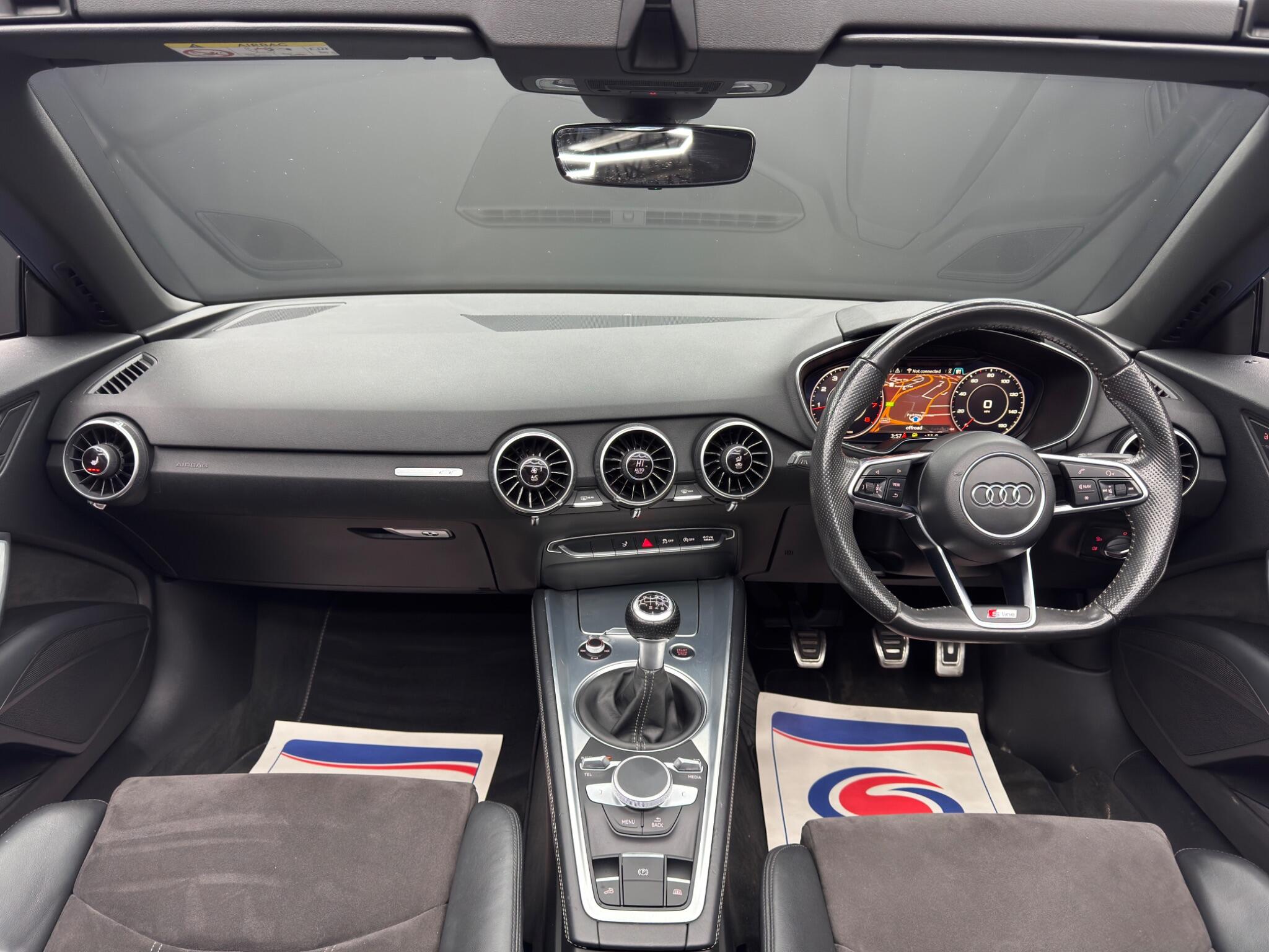 Here at Motor Gurus we are delighted to offer an Audi TT 2.0 TFSI S line Roadster. This vehicle is in immaculate condition inside and out. This specific vehicle is finished in a GLOSS BLACK and is matched with a BLACK LEATHER/SUEDE interior. This vehicle comes included with: BLACK SOFT TOP ROOF, PERFORATED GRIPPED LEATHER STEERING WHEEL, FRONT HEATED SEATS, REAR WIND DEFLECTOR, HEATED SIDE MIRRORS, AUTOMATIC HEADLIGHTS, DIGITAL COCKPIT, SAT NAVIGATION, DAB RADIO, BLUETOOTH AUDIO, TELEPHONE CONNECTIVITY, CUPHOLDER, DRIVING MODES AND MUCH MORE! Our Audi TT 2.0 TFSI S line Roadster has come to us with FULL DEALERSHIP SERVICE HISTORY and 2 KEYS! We will also provide this vehicle with a 12 MONTH MOT as well as a FRESH OIL SERVICE before it leaves our premises (OTR).