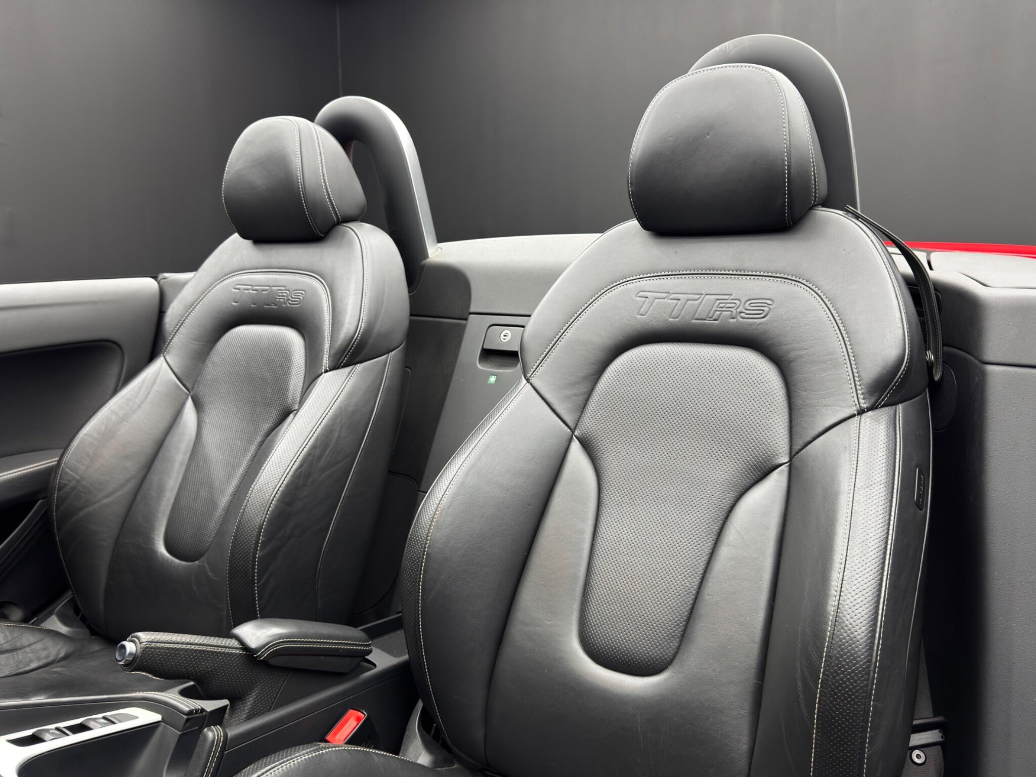 Here at Motor Gurus we are delighted to offer a Audi TT RS 2.5 TFSI RS Roadster S Tronic quattro. This vehicle is in very good condition when taking into consideration the vehicle's age and mileage. This specific vehicle is finished in a GLOSS RED and is contrasted by a BLACK LEATHER interior. This vehicle comes included with: REAR PARKING SENSORS, HEATED SIDE MIRRORS, FRONT HEATED SEATS, PERFORATED GRIPPED LEATHER STEERING WHEEL, CRUISE CONTROL, AUTOMATIC HEADLIGHTS, TWIN CUPHOLDERS, DRIVING MODES, CLIMATE CONTROL, SAT NAVIGATION, RADIO, BLUETOOTH AUDIO, TELEPHONE CONNECTIVITY AND MUCH MORE! Our Audi TT RS 2.5 TFSI RS Roadster S Tronic quattro has come to us with SERVICE HISTORY and will also come provided with a 12 MONTH MOT and a FRESH OIL SERVICE before it leaves our premises (OTR).