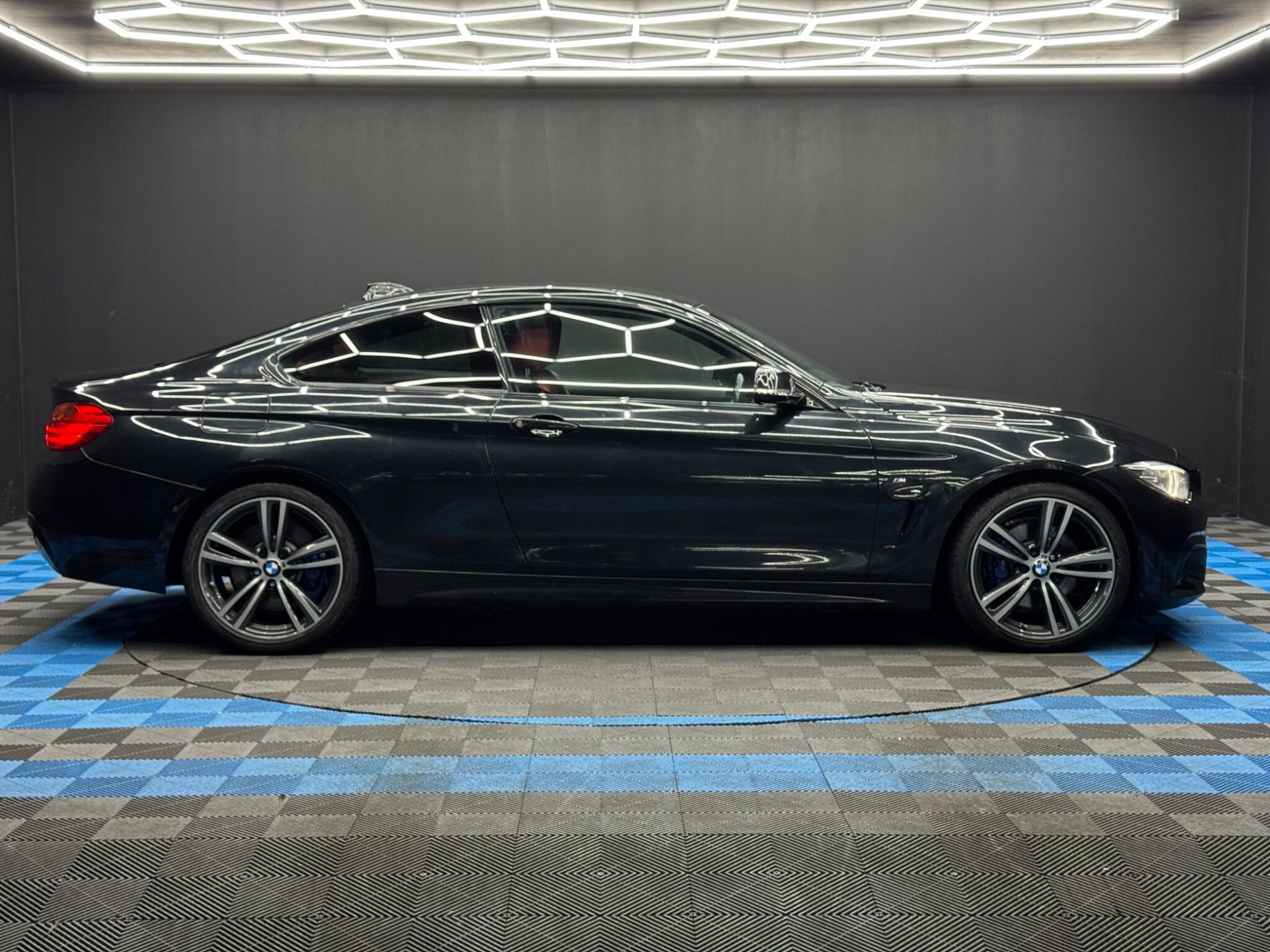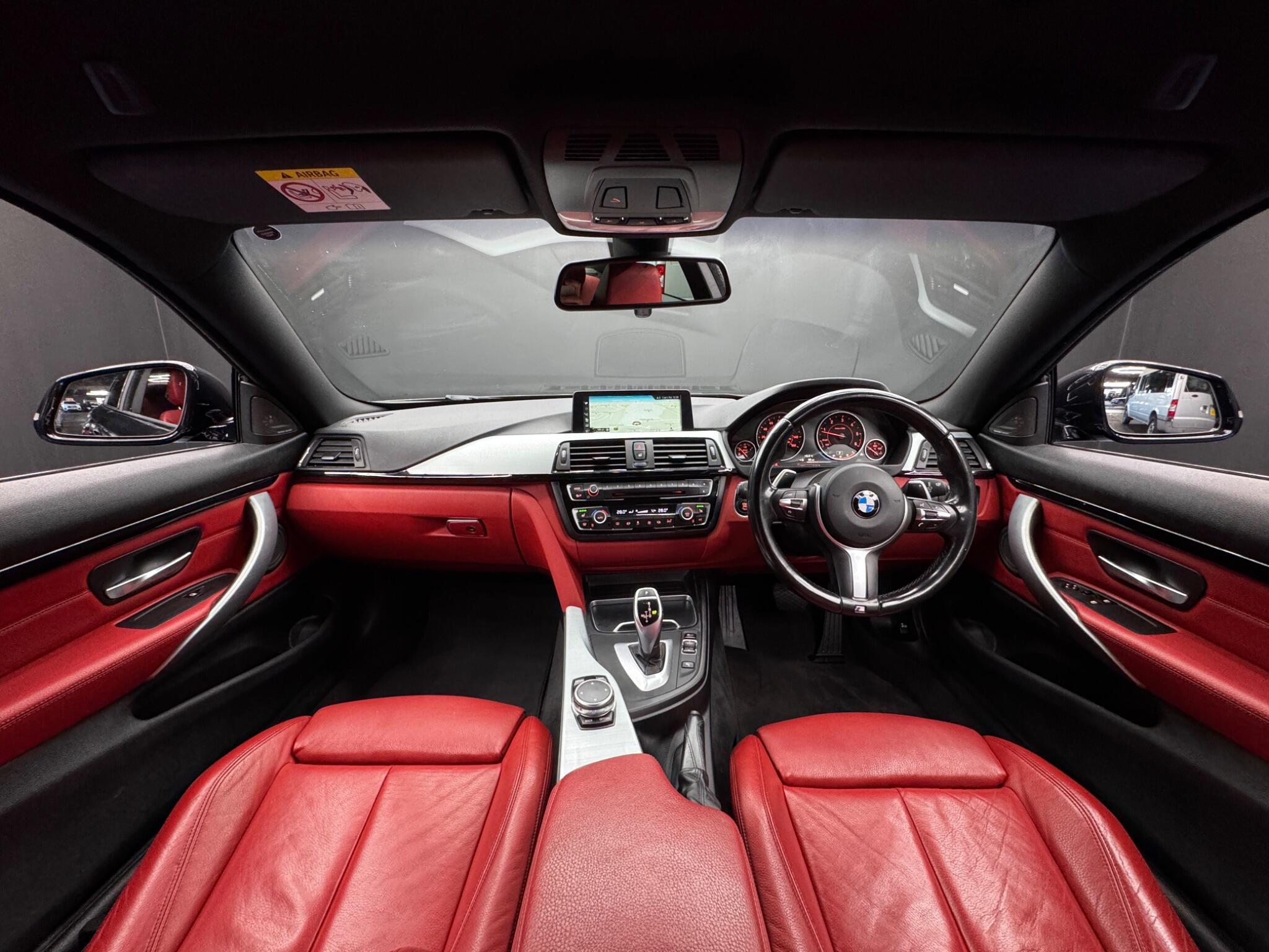 Here at Motor Gurus we are delighted to offer a BMW 4 Series 2.0 420d M Sport Auto. This vehicle is in immaculate condition inside and out. This specific vehicle is finished in a GLOSS BLACK and is contrasted by a RED LEATHER interior. This vehicle comes included with: FRONT & REAR PARKING SENSORS, PRIVACY GLASS, FRONT HEATED SEATS, HARMAN/KARDON SOUND SYSTEM, CRUISE CONTROL, TWIN CUPHOLDERS, DRIVING MODES, CLIMATE CONTROL, SAT NAVIGATION, DAB RADIO, BLUETOOTH AUDIO, TELEPHONE CONNECTIVITY, TYRE PRESSURE MONITORING AND MUCH MORE! Our BMW 4 Series 2.0 420d M Sport Auto has come to us with SERVICE HISTORY, 2 KEYS, is a 1 OWNER FROM NEW and is ONLY £35 TAX! We will also provide a 12 MONTH MOT and a FRESH OIL SERVICE before it leaves our premises (OTR).