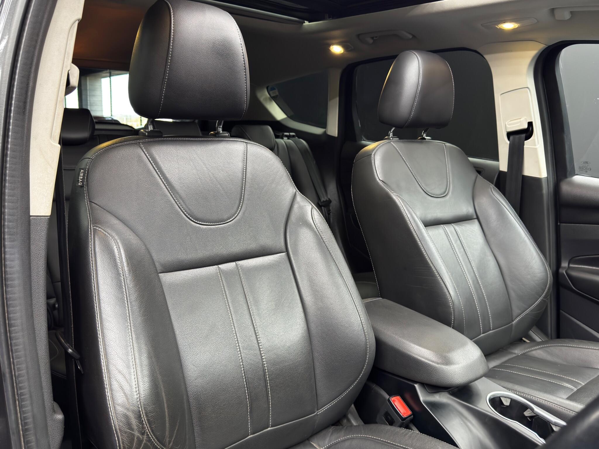 Here at Motor Gurus we are delighted to offer a Ford Kuga 2.0 TDCi Titanium X Powershift AWD. This vehicle is in very good condition when taking into consideration the vehicle's age and mileage. This specific vehicle is finished in a GLOSS GREY and is contrasted by a BLACK LEATHER interior. This vehicle comes included with: REAR PARKING SENSORS, PRIVACY GLASS, SLIDING GLASS PANORAMIC ROOF, ELECTRIC TAILGATE, FRONT HEATED SEATS, DRIVER ELECTRIC SEAT, CRUISE CONTROL, AUTOMATIC HEADLIGHTS, TWIN CUPHOLDERS, CLIMATE CONTROL, DAB RADIO, BLUETOOTH AUDIO, TELEPHONE CONNECTIVITY, TYRE PRESSURE MONITORING AND MUCH MORE! Our Ford Kuga 2.0 TDCi Titanium X Powershift AWD has come to us with 2 KEYS and will also come provided with a 12 MONTH MOT and a FRESH OIL SERVICE before it leaves our premises (OTR).