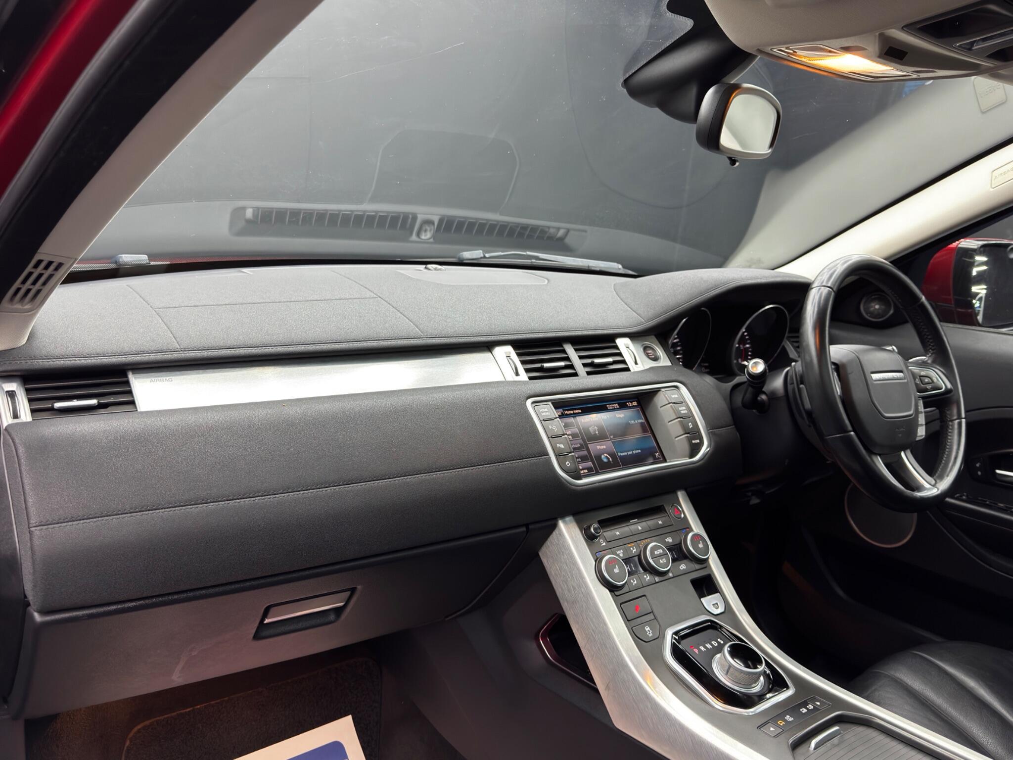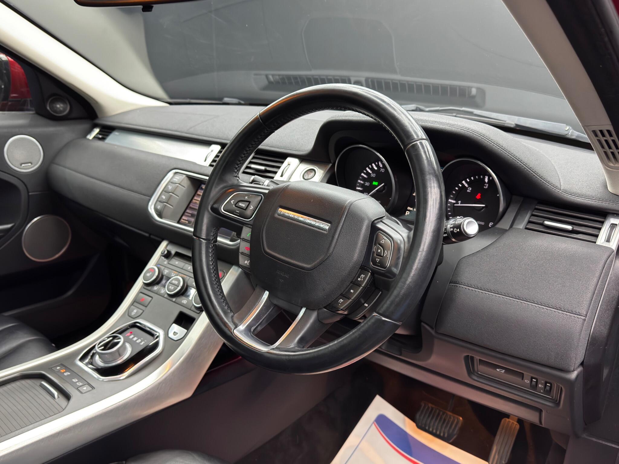 Here at Motor Gurus we are delighted to offer a Land Rover Range Rover Evoque 2.2 SD4 Pure Auto 4WD . This vehicle is in immaculate condition inside and out. This specific vehicle is finished in a GLOSS RED and is contrasted by a BLACK LEATHER interior. This vehicle comes included with: FRONT & REAR PARKING SENSORS, MERIDIAN SOUND SYSTEM, FIXED GLASS ROOF, CRUISE CONTROL, TWIN CUPHOLDERS, ADJUSTABLE AIR SUSPENSION, CLIMATE CONTROL, FRONT HEATED SEATS, DAB RADIO, BLUETOOTH AUDIO, TELEPHONE CONNECTIVITY, PARK ASSIST, AMBIENT LIGHTING, AUTOMATIC HEADLIGHTS AND MUCH MORE! Our Land Rover Range Rover Evoque 2.2 SD4 Pure Auto 4WD has come to us with SERVICE HISTORY (9 STAMPS FROM DEALER), 2 KEYS and is a 1 FORMER KEEPER FROM NEW! We will also provide this vehicle with a 12 MONTH MOT as well as a FRESH OIL SERVICE before it leaves our premises (OTR).