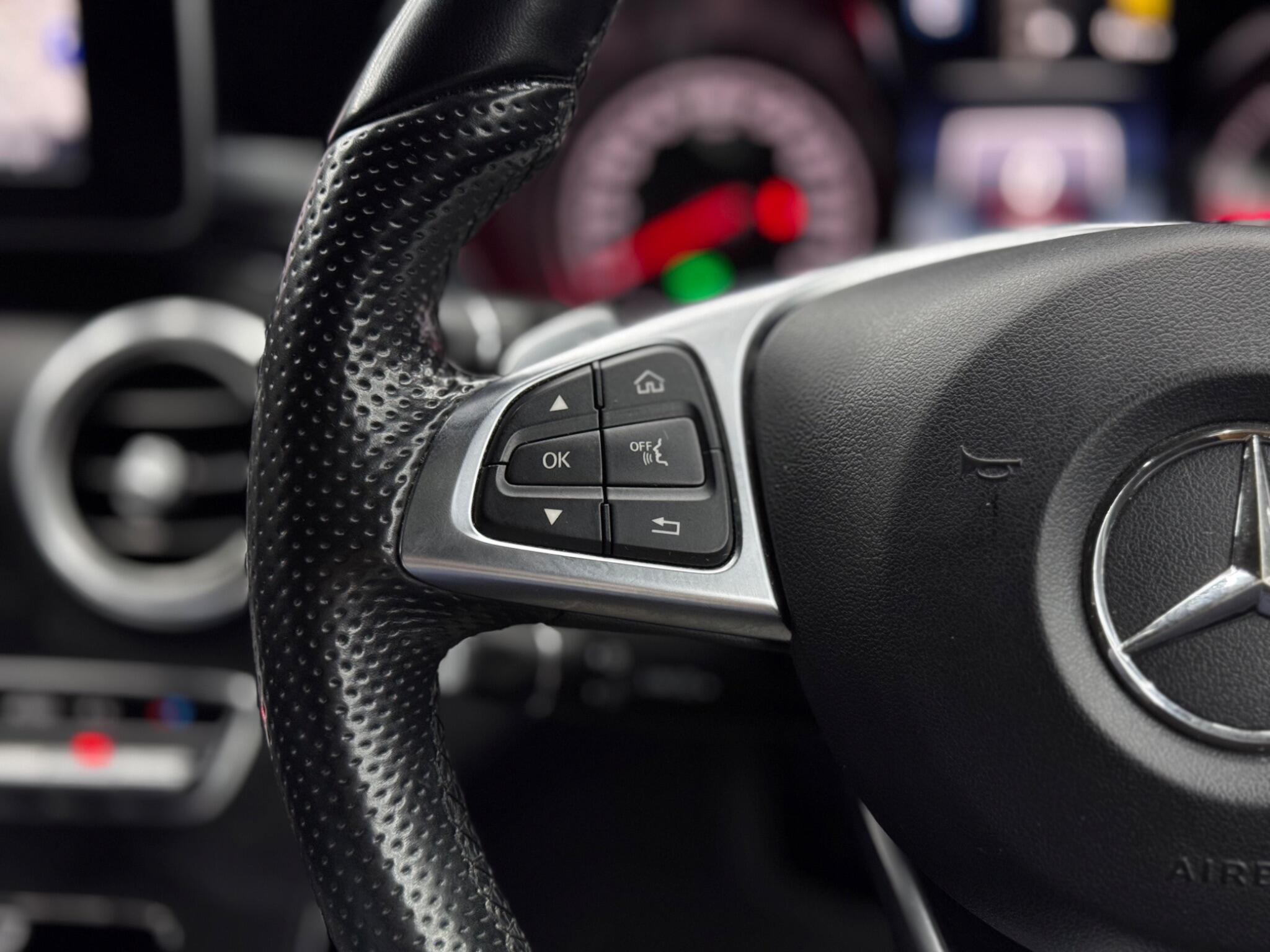 - Steering Wheel - 3-Spoke Multi-Function AMG in Black Leather with Flattened Bottom Section and Chrome Inserts and Perforated Leather in Grip Area